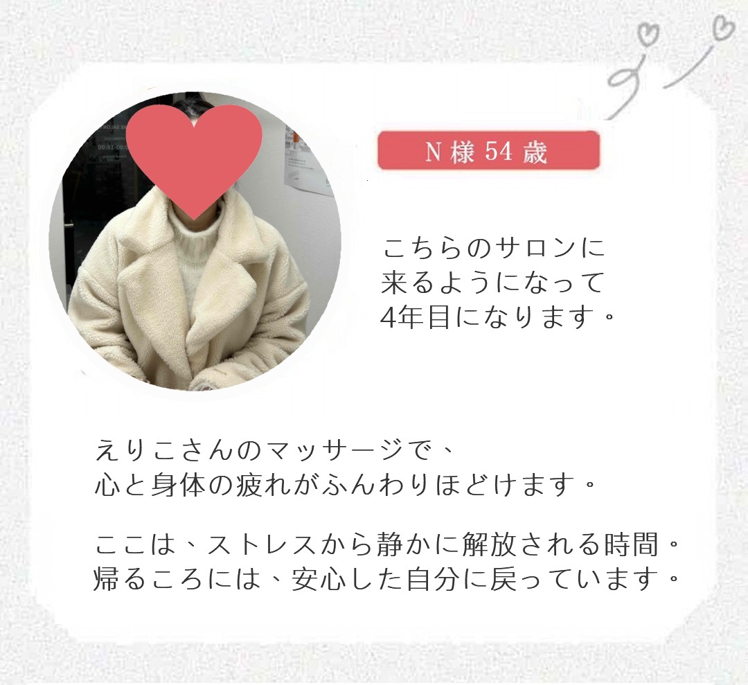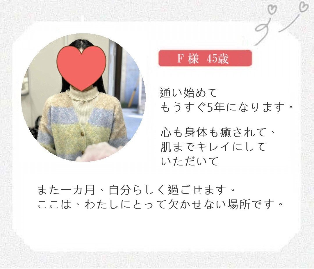 これまで多くの女性の肌に触れながら、“きれいになること”が、時に生きる力になる瞬間を見てきました。肌が整うと、呼吸が深くなり、表情がやわらぎ、少し前向きな自分になれる。レンカは、そんな静かな変化を大切にする場所です。やさしく、でも確かな手で、あなたを本来の位置へ整えていきます。