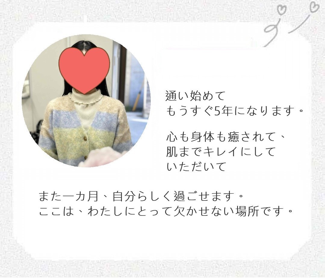 | <キャンセル料のお支払いについて> | ご予約を取り直していただいた次回御来店時の施術料金と合算してご請求させていただきます。 |
